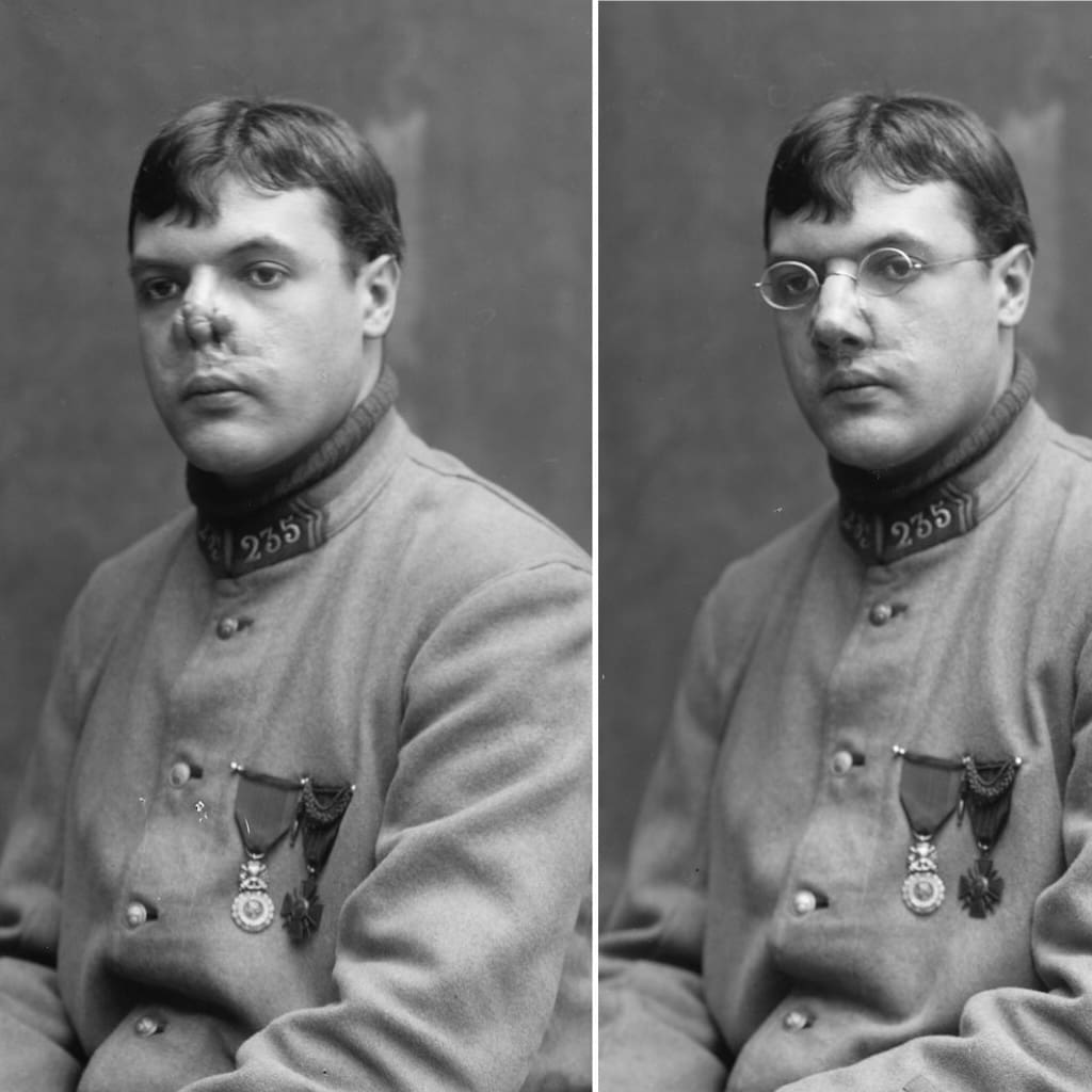 We have compiled some pictures here of World War one plastic surgeries, battlefields, hospitals. These are the earliest plastic surgery before and afters. We hope you find them interesting in much the same way as we did.